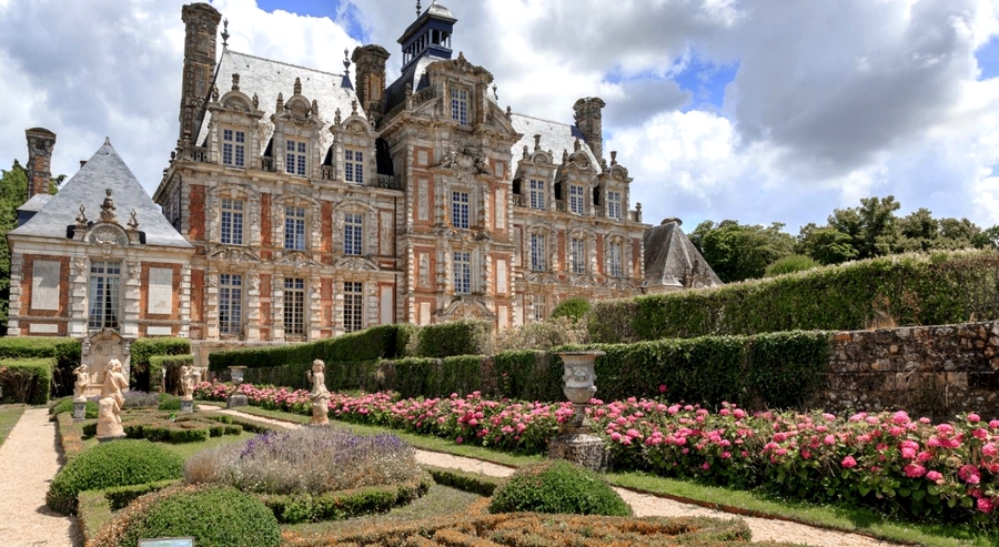 Le château de Beaumesnil, bel exemple d'architecture Louis XIII, avec des apports stylistiques italianisants comme les masques ou les pilastres bagués, se situe dans le département de l'Eure, sur la commune de Mesnil-en-Ouche. L'édifice actuel a été bâti de 1631 à 1644 et a fait l'objet de restaurations au XIXe siècle, notamment à partir de 1833, sur l'emplacement d'un très ancien château médiéval, où l'on vit passer des personnages aussi importants que la célèbre et puissante famille d'Harcourt, aux immenses possessions en Normandie et en Angleterre, ou encore le commandant militaire anglais Robert de Willoughby pendant la Guerre de Cent Ans.